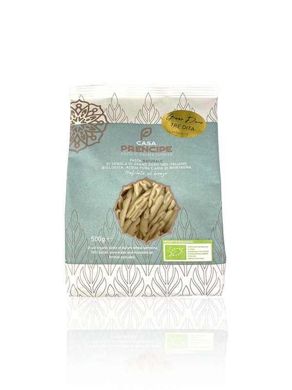 Typisches Format aus Apulien und der Basilikata, das wir als “Dreifinger” bezeichnen, weil es mit den Fingerspitzen von drei Fingern “geformt” wurde. Im Allgemeinen “Cicatelli” oder “Capunti” genannt.