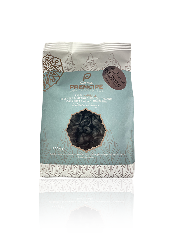 Orecchiette mit Rotwein ‘NERO DI TROIA’ zubereitet. Hergestellt in Apulien.