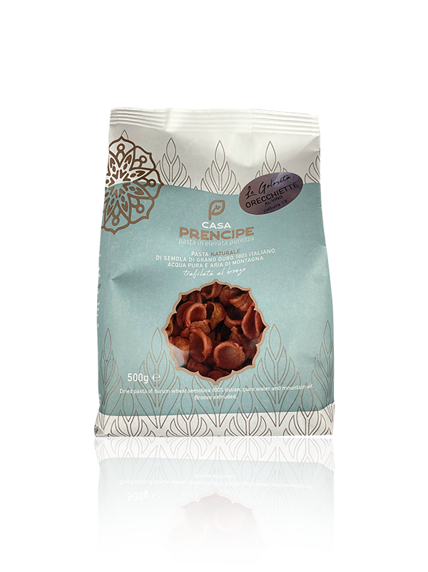 Orecchiette mit Rotwein ‘NERO DI TROIA’ zubereitet. Hergestellt in Apulien.