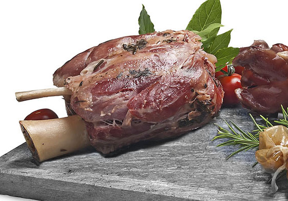 Vengono selezionati i pezzi di carne migliori e più adatti, ancora con l’osso, cotti a fuoco lento e insaporiti con vari aromi come rosmarino, aglio e un antico processo di concia.