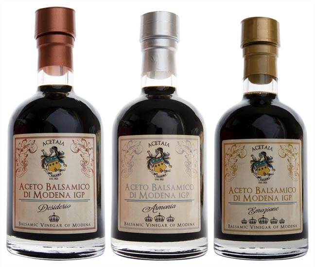 Balsamico-Essig aus Modena g.g.A. “Desiderio” IGP ist das Ergebnis einer geschickten Mischung aus gekochten Mosten und in Eichenfässern gereiftem Weinessig.