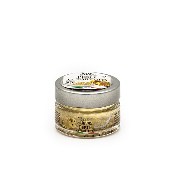 Zutaten: Trüffeldressing (konzentrierter weißer Traubenmost, Weißweinessig, Trüffel (Tuber aestivum Vitt.) (1%), weißes Trüffelaroma), Wasser, Verdickungsmittel: Cellulosegummi; Geliermittel: Calciumchlorid, Natriumalginat; Konservierungsmittel: Kaliumsorbat. Enthält Sulfite. Nach dem Öffnen im Kühlschrank aufbewahren und innerhalb von 14 Tagen verbrauchen.